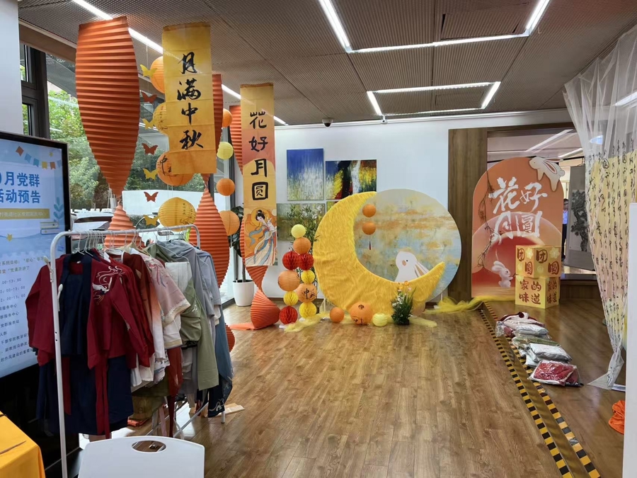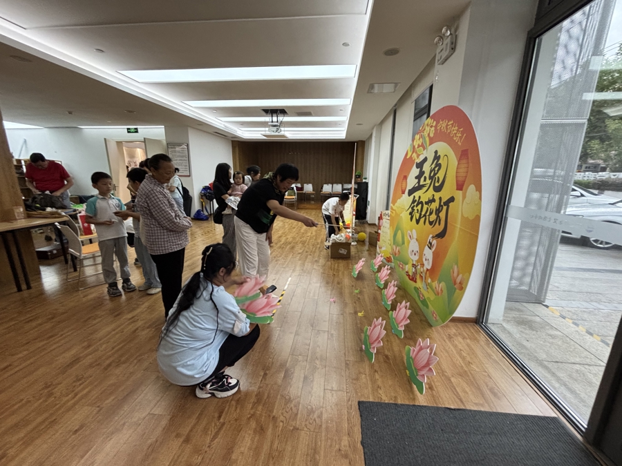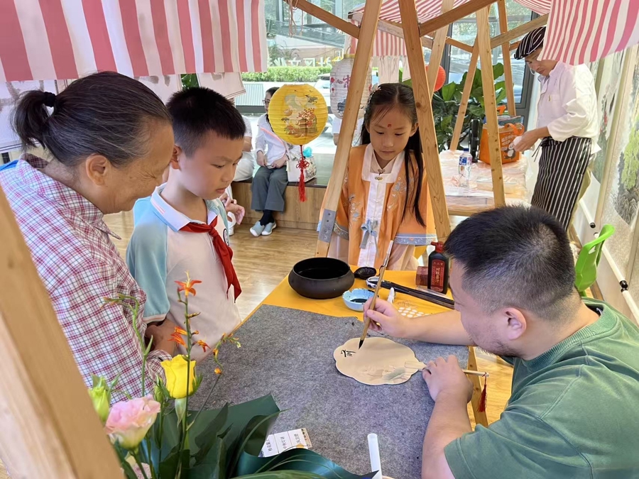 家住周边小区的学生王子赫是社区文化活动中心的“常客”,几乎每周都要来打卡不同的活动,而中秋社区国潮游乐会是头次体验,“我今天猜了灯谜,体验了茶道、插花还有画团扇,感觉过中秋特别热闹,也很好玩。”